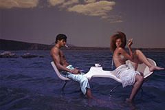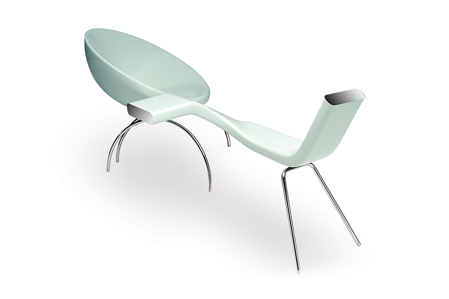 The expressiveness of man’s and woman’s body language in courtship is sincretized with reminiscences of the classic love seat chair.