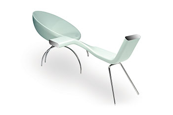 The expressiveness of man’s and woman’s body language in courtship is sincretized with reminiscences of the classic love seat chair.